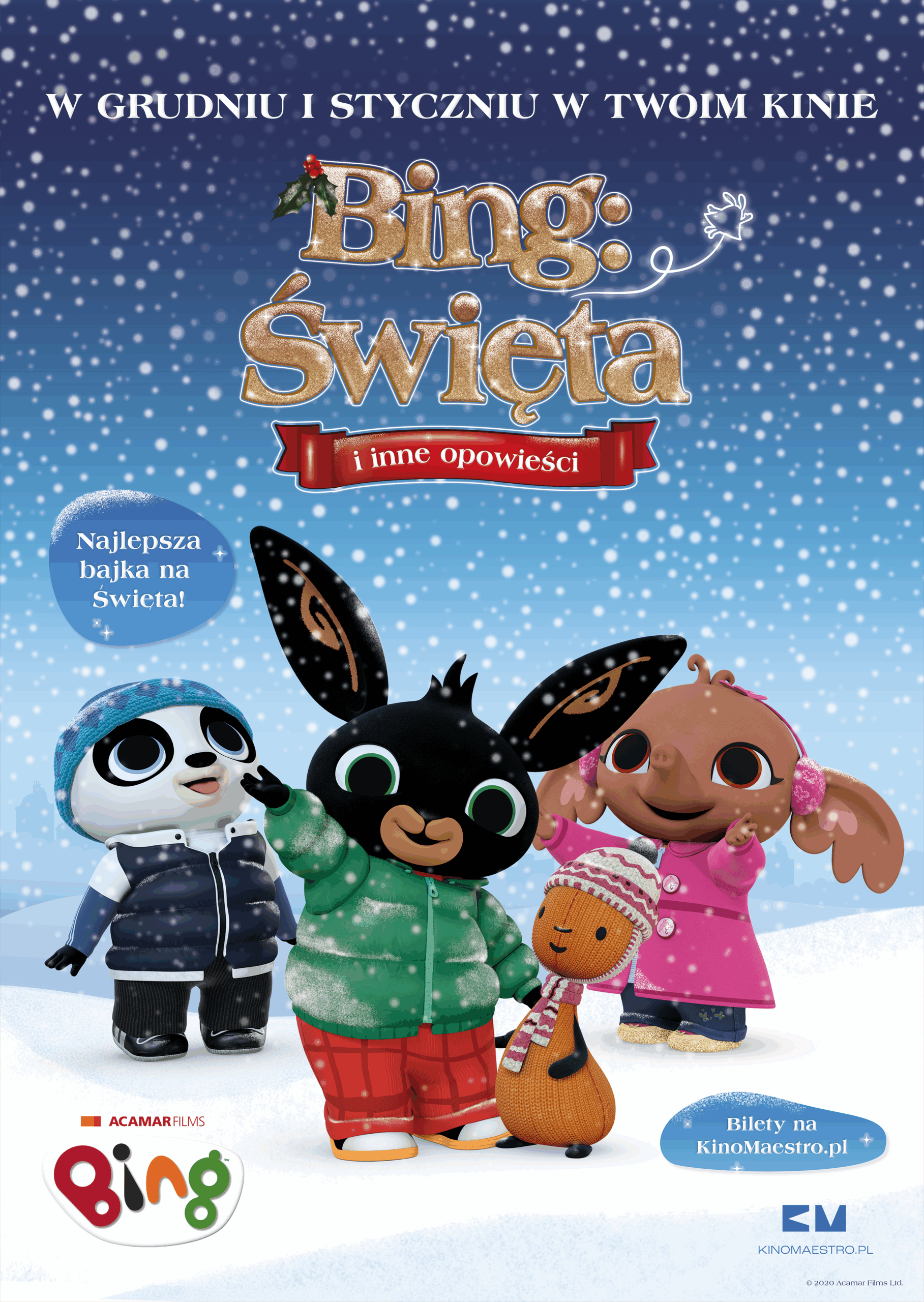 Zabierz swoje dzieci lub wnuki na najfajniejszą bajkę świąteczną tego sezonu! „Bing: Święta i inne opowieści” to zestaw pełnych ciepła, pogodnych historii o przygotowaniach do gwiazdki. Rezolutny króliczek Bing i jego przyjaciele: Sula, Amma, Flop i Pico, szykują się do świąt Bożego Narodzenia. Razem tworzą ozdoby, występują w teatrzyku kukiełkowym, malują twarze i oczywiście rozpakowują prezenty. Wspólnie uczą się, jak ważna jest współpraca, pomaganie innym i radość z byc