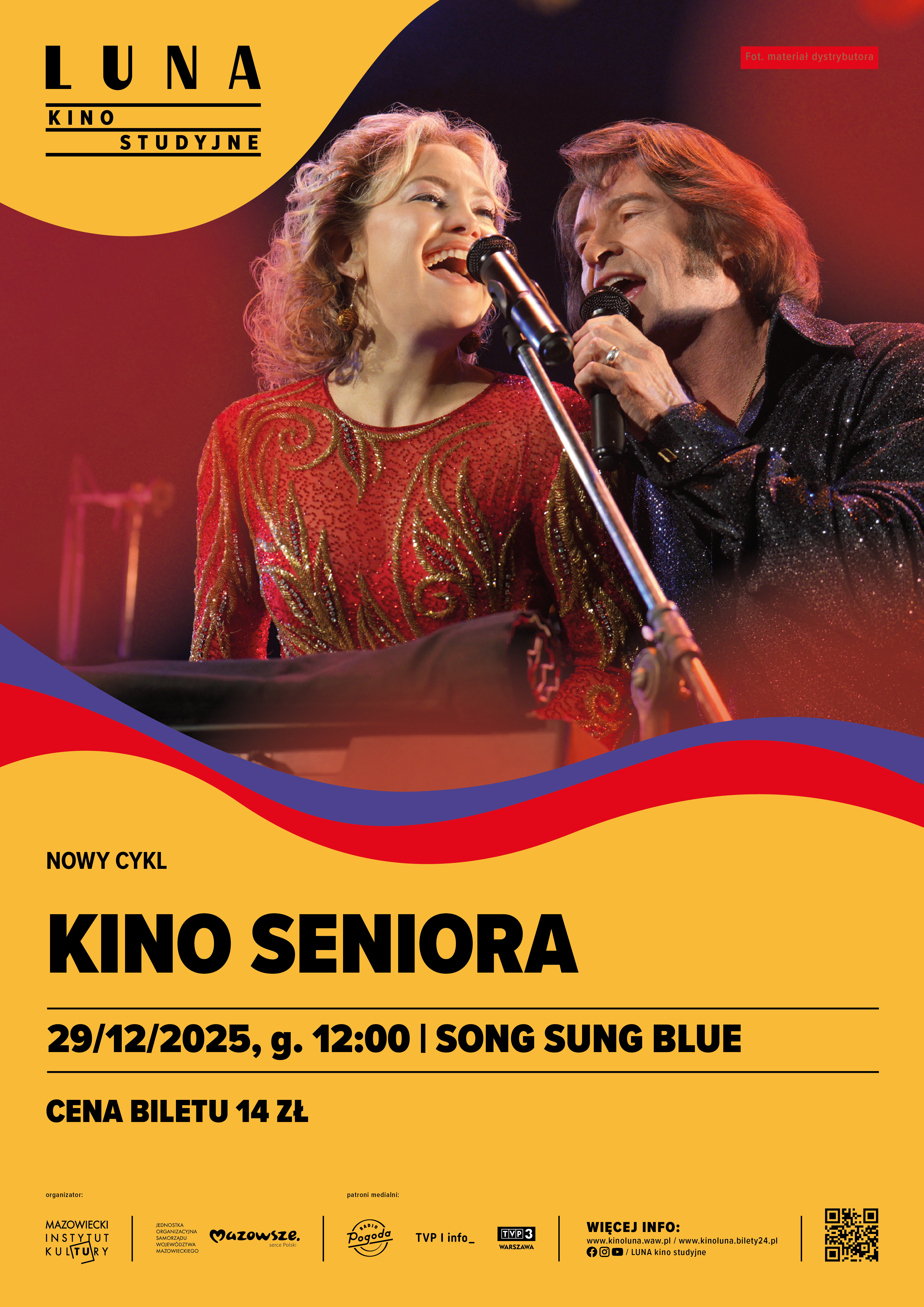 Kino Luna zaprasza na kolejny seans w ramach cyklu KINO SENIORA – opowieść pełna triumfu i smutku, która potrafi wzruszyć i rozbawić.Film: „Song Sund Blue”Gdy dwoje rozwiedzionych muzyków w średnim wieku spotyka się na koncercie, na którym oboje występują, zaczyna rodzić się między nimi uczucie. Łączy ich pasja do muzyki i doświadczenie życiowych trudności, a ich relacja zacieśnia się jeszcze bardziej, gdy zakładają zespół celebrujący twórczość Neila Diamonda, legend