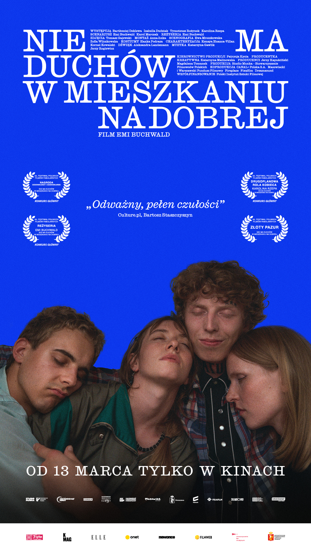 “Nie ma duchów w mieszkaniu na Dobrej”, reż. Emi Buchwald, Polska, 2025, 90’Określany mianem olśnienia, debiut fabularny Emi Buchwald, laureatki Paszportów Polityki, to jeden z najbardziej wyczekiwanych filmów tego roku - 10 nominacji do Polskich Nagród Filmowych ORŁY. Porównywany jest do uwielbianych przez widzów filmów: „Najgorszy człowiek na świecie” oraz „Frances Ha”. W rolach głównych: Bartłomiej Deklewa, Karolina Rzepa, Izabella Dudziak oraz debiutujący na wielkim ekranie Tymoteusz Rożynek znany pod pseudonimem Szczyl. Wchodząca w dorosłość czwórka rodzeństwa próbuje odnaleźć własne ścieżki, nie tracąc przy tym łączących ich więzi. Najmłodszy, Benek, mierzy się z bolesnym odrzuceniem ze strony starszego brata, Franka, który dotąd był jego najlepszym przyjacielem. Chłopaka nawiedza także tajemnicza zjawa – Dusiołek – niepozwalająca mu zasnąć i wywołująca nagłe napady paniki. Uciekający od rodziny Franek wplątuje się w toksyczny związek, popada w kłopoty z narkotykami i coraz bardziej pogrąża się w chaosie. Jego stan budzi niepokój Nastki, siostry bliźniaczki, która sama pragnie miłości i stabilizacji. Najstarsza z rodzeństwa, Jana, pracuje nad projektem artystycznym, który ma przynieść ukojenie nie tylko młodszemu rodzeństwu, lecz także jej samej.
